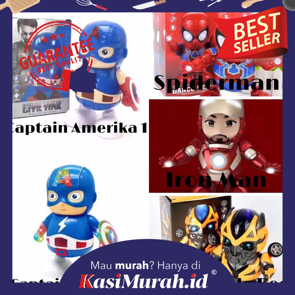 KASIMURAH K221 Dancing Mainan Robot Iron Man Spiderman . Sumber Gambar : shopee.co.id